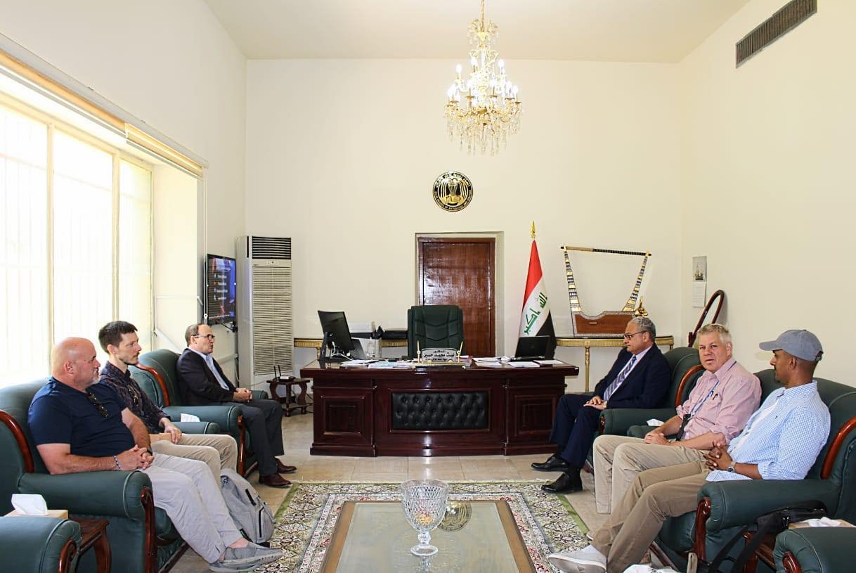 بحث رئيس الهيئة العامة للآثار والتراث د. ليث مجيد حسين مع مدير مشروع طاق كسرى وبوابة المسقى في نينوى مايكل دانتي والوفد المرافق من جامعة بنسلفانيا، آليات تطوير العمل في الموقعين المذكورين .