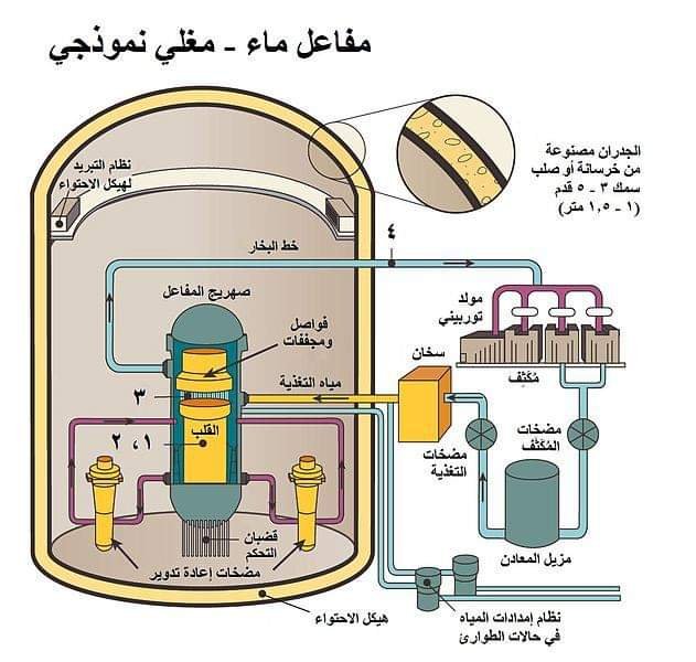الصورة المترجمة باللغة العربية قد لا تكون مماثلة للمفاعل الروسي، ولكنها شرح مبسط لطريقة عمل المفاعلات النووية بالبخار والماء..