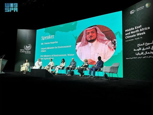 جاء ذلك خلال مشاركته بجلسة حوارية تحت عنوان (التعاون حول الموارد المشتركة الماء والغذاء والأرض والمحيطات)، والتي أقيمت ضمن أعمال أسبوع المناخ لمنطقة الشرق الأوسط وشمال أفريقيا لعام 2023م، الذي تستضيفه المملكة حاليًا بالتعاون مع أمانة اتفاقية الأمم المتحدة الإطارية بشأن تغير المناخ (UNFCCC).