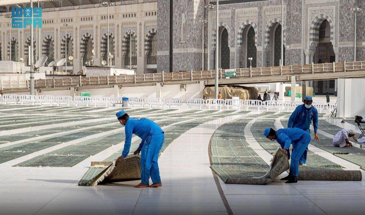 ومن الخدمات المقدمة تكثيف أعمال غسل وتعقيم المسجد الحرام وسطحه وساحاته ومرافقه وتهيئته للزوار والمصلين، من خلال القيام بعدد 10 غسلات يومياً وفق منظومة عمل يقوم عليها 4000 عامل وعاملة يشرف عليهم (200) مشرف سعودي يعملون على مدار الساعة، و (120 ) مهندسًا وفنيًا بشكل دائم قبيل كل صلاة، وذلك لتغذية شبكة الصوت (8) آلاف سماعة داخل المسجد الحرام وساحاته، وتوفير عدد ( 3516 ) دورة مياه، وعدد (9.155) حافظة يومياً، وأكثر من (35.000) سجاد جديد بجميع مصليات المسجد الحرام وساحاته، 3000 عربة يدوية و 2000 عربة كهربائية، وعدد 6000 من دافعي العربات ، وتشغيل أكثر من (1000) معدة وآلة للمشاركة في أعمال الغسيل على مدار اليوم، لتصل نسبة الاستيعاب إلى (مليون و600 ألف مصل ).