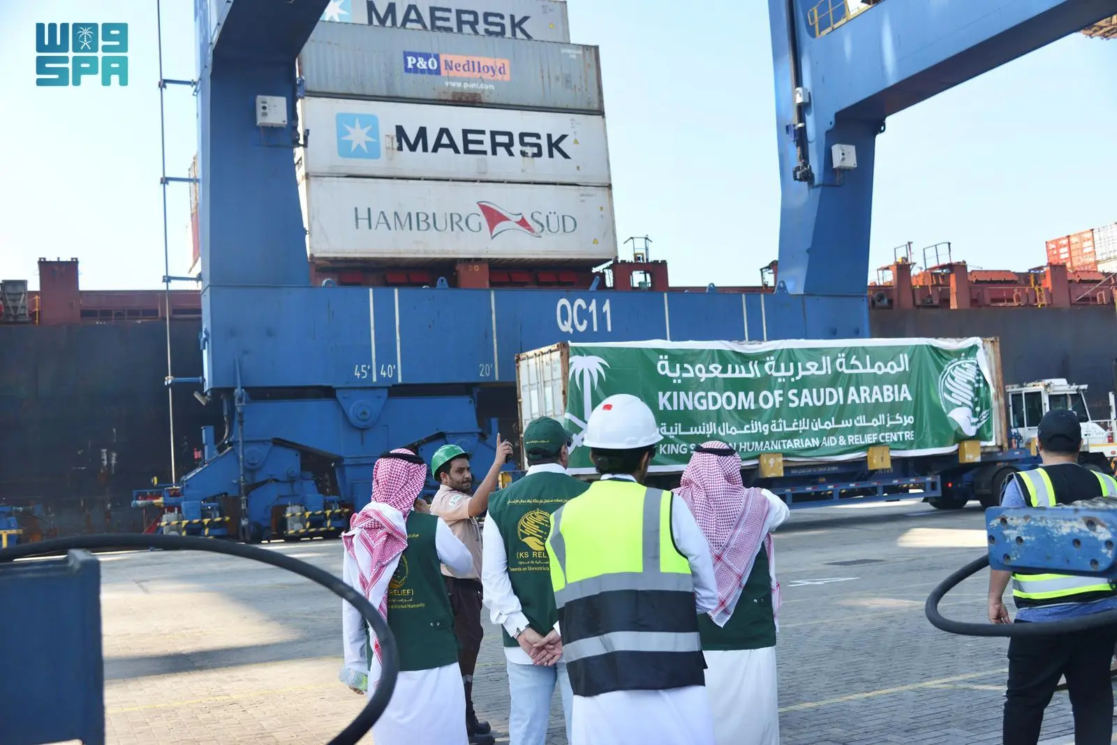 سيّر مركز الملك سلمان للإغاثة والأعمال الإنسانية من ميناء جدة الإسلامي أمس، الباخرة الإغاثية السعودية الخامسة ضمن الجسر البحري السعودي لإغاثة الشعب الفلسطيني في قطاع غزة متجهة إلى ميناء بورسعيد بجمهورية مصر العربية، والتي تحمل على متنها مساعدات إغاثية تزن 400 طن تشتمل على مواد غذائية ومواد إيوائية كالخيام والبطانيات ومواد طبية مثل الأجهزة التنفسية و300 أسطوانة أكسجين، تمهيدًا لنقلها إلى المتضررين من الشعب الفلسطيني داخل القطاع.