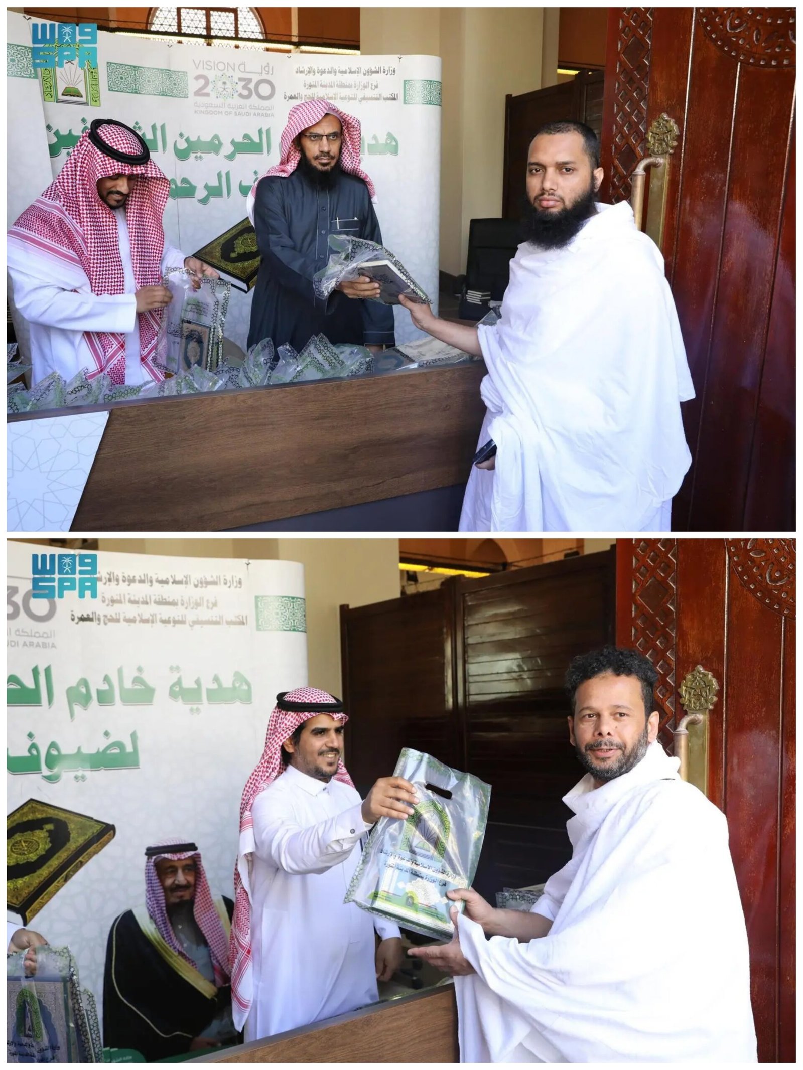 وزعت وزارة الشؤون الإسلامية والدعوة والإرشاد، ممثلة بفرعها في منطقة المدينة المنورة، خلال الفترة من الأول وحتى التاسع من شعبان الجاري، أكثر من 80 ألف حقيبة تحتوي على نسخة من المصحف الشريف وترجمة معانيه، وبعض الهدايا، وذلك للزوار والمعتمرين المغادرين عبر مطار الأمير محمد بن عبدالعزيز الدولي بالمدينة المنورة.