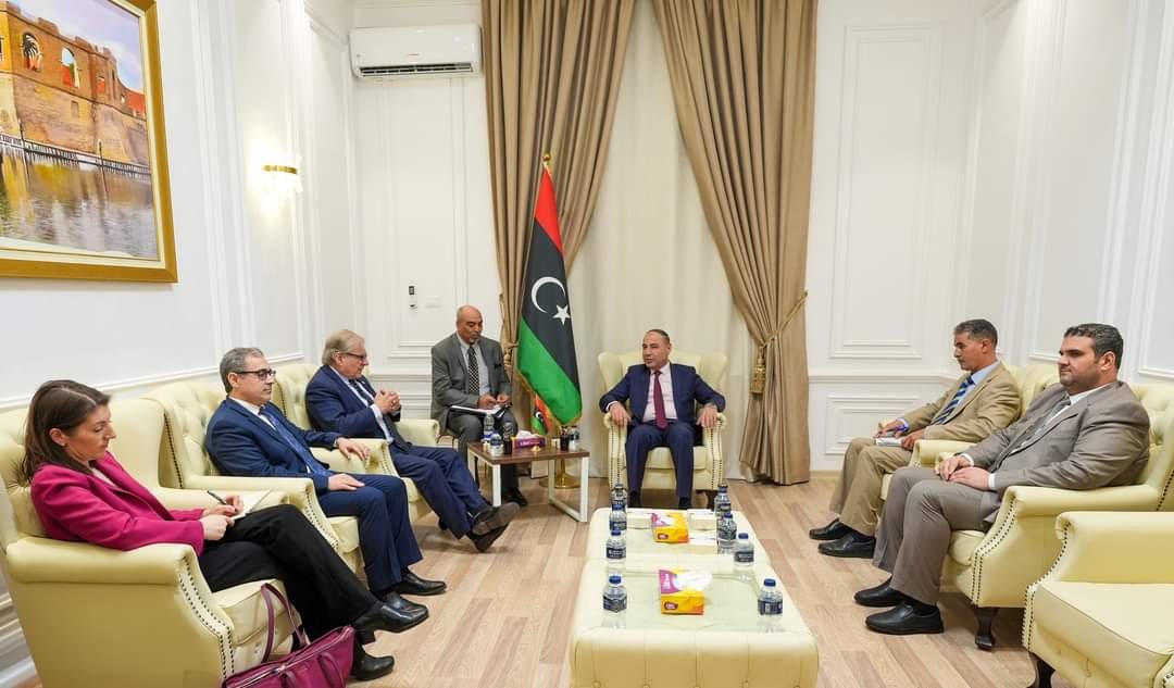 جرى خلال اللقاء مناقشة آخر تطورات الوضع السياسي واستعراض علاقات التعاون ذات الاهتمام المتبادل ومناقشة استئناف عمل السفارة من العاصمة طرابلس خلال المدة القادمة، إضافة إلى بحث القضايا المحلية والدولية ومنها تطورات الأوضاع في قطاع غزة، وأهمية التنسيق المشترك، وبذل الجهود لخفض التصعيد.