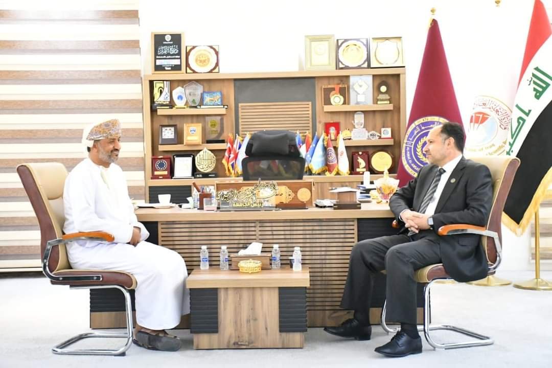 استقبل رئيس جامعة الفرات الأوسط التقنية الأستاذ الدكتور حسن لطيف الزبيدي رئيس إدارة تقنية المعلومات والتنقيب عن البيانات وربط الشبكات في جامعة السلطان قابوس سلطنة عمان الاستاذ الدكتور جمعه سالم الشكيلي لفتح آفاق التعاون العلمي المشترك بين الجانبين.