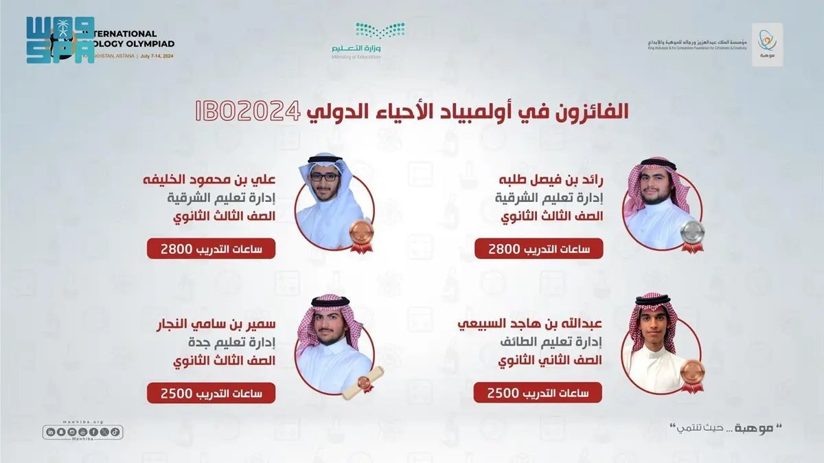 حقق المنتخب السعودي للأحياء 4 جوائز عالمية في أولمبياد الأحياء الدولي 2024 في دورته 35 التي أقيمت في مدينة أستانا بدولة كازاخستان خلال الفترة من 7 إلى 14 يوليو الجاري، بمشاركة 320 طالباً من 83 دولة.