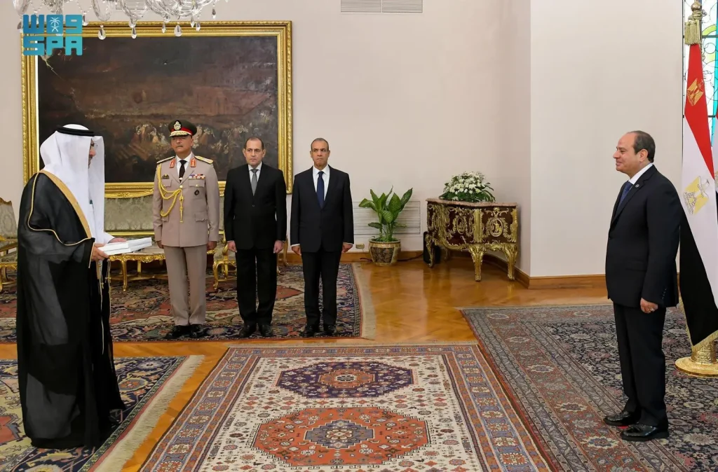 ونقل السفير الحصيني، تحيات خادم الحرمين الشريفين الملك سلمان بن عبدالعزيز آل سعود، وصاحب السمو الملكي الأمير محمد بن سلمان بن عبدالعزيز آل سعود ولي العهد رئيس مجلس الوزراء – حفظهما الله – لفخامته، وتمنياتهما للشعب المصري دوام التقدم والازدهار.