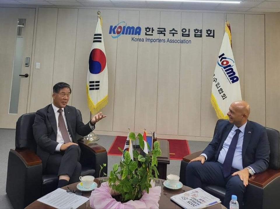 في اطار تعزيز التعاون التجاري والاستثماري المستمر بين مصر وكوريا الجنوبية وبمناسبة قرب الاحتفال بمرور ٣٠ عاما علي بدء العلاقات الدبلوماسية بين الدولتين في عام ٢٠٢٥، التقي السفير / خالد عبد الرحمن سفير جمهورية مصر العربية في كوريا الجنوبية برئيس مجلس الإدارة والرئيس التنفيذي لرابطة المستوردين الكوريين “KOIMA”.