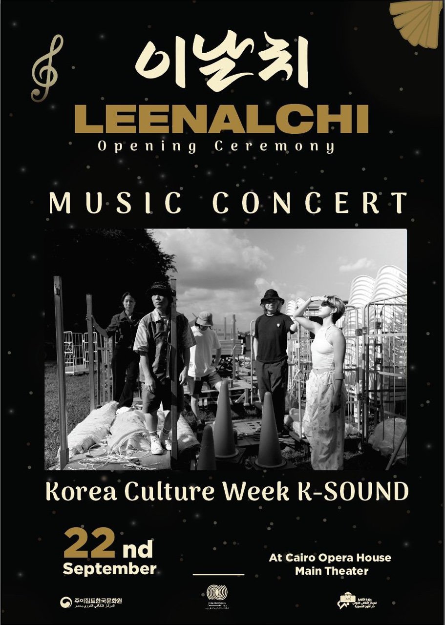 ويُفتتح الأسبوع الثقافي بحفل موسيقي تُحييه فرقة “لينالتشي” الكورية في 22 سبتمبر على خشبة المسرح الكبير في الثامنة مساء، وبالتزامن سيجرى افتتاح معرض للآلات الموسيقية التقليدية بالمكتبة الموسيقية بالأوبرا، كما يستضف المركز الثقافي الكوري بمقره بالدقي خلال الفترة من 23 إلى 26 سبتمبر ورش أريرانج الفنية، والتي توفر للمشاركين التدريب على أداء أغنية “أريرانج”، الأغنية الشعبية المحببة للكوريين، وكذلك تصميم المروحة الكورية التقليدية.