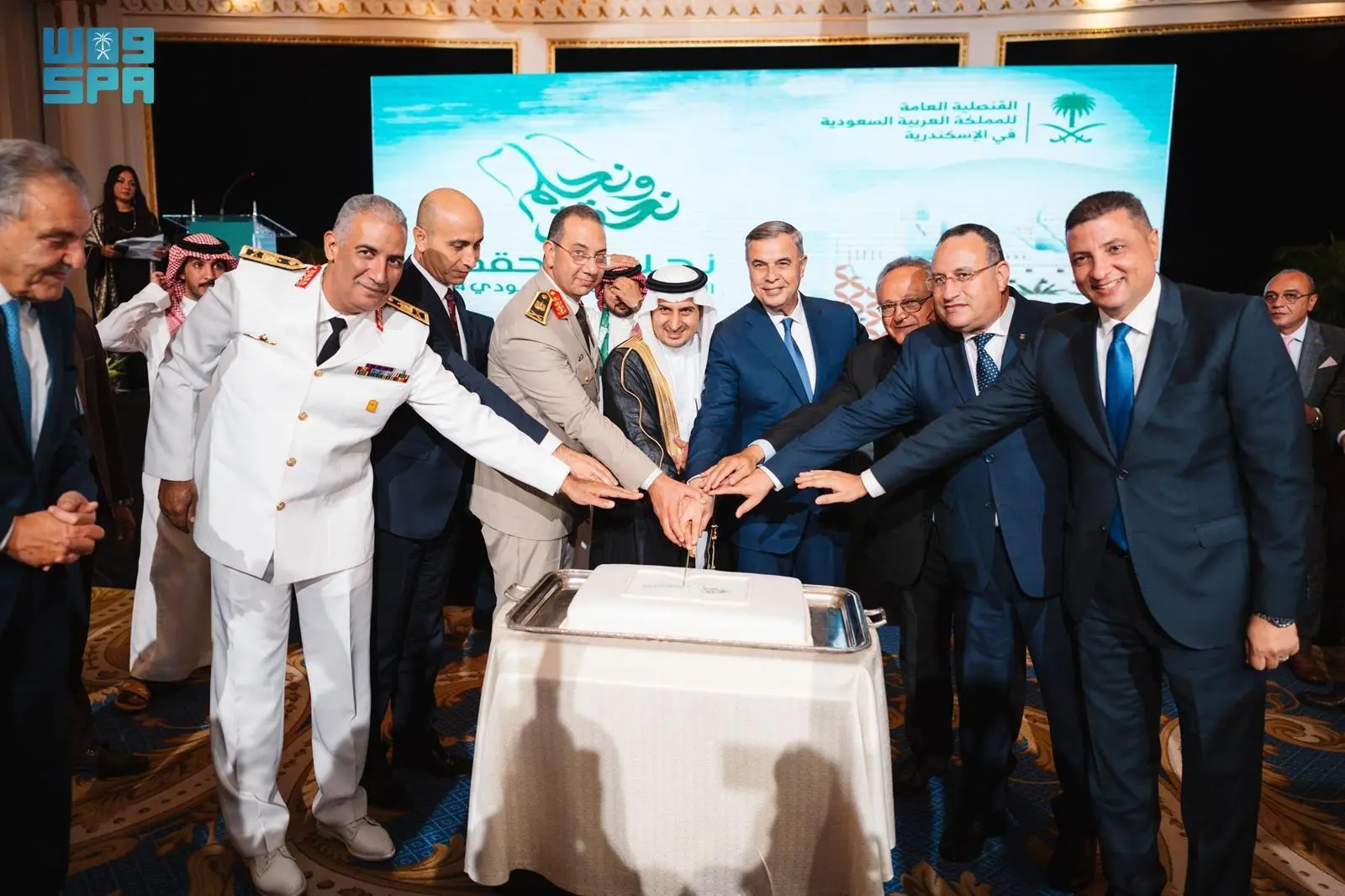 أقام القنصل العام للمملكة بالإسكندرية مزيد بن محمد الهويشان، حفلًا بمناسبة اليوم الوطني الـ 94، بحضور محافظ الإسكندرية الفريق أحمد خالد، إلى جانب عدد من الشخصيات الدبلوماسية والمسؤولين المصريين ورجال الأعمال والمثقفين والإعلاميين.