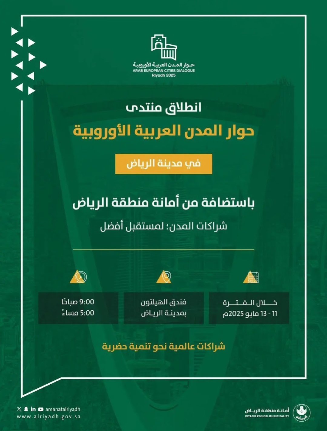 ويُعد المنتدى منصة إستراتيجية لتقوية الروابط بين المدن العربية والأوروبية، وتعزيز دبلوماسية المدن، ودعم توجهاتها نحو تنمية حضرية أكثر استدامة وشمولًا، حيث يمثل اختيار الرياض كأول مدينة تستضيف المنتدى تأكيدًا على مكانتها المتقدمة في المشهد الحضري الإقليمي والدولي، ودورها الحيوي في دعم المبادرات البلدية وتعزيز الشراكات العابرة للحدود.
