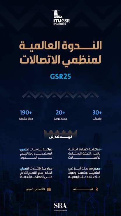 انطلقت اليوم أعمال الندوة العالمية لمنظمي الاتصالات (GSR25) في نسختها الخامسة والعشرين، التي تنظّمها هيئة الاتصالات والفضاء والتقنية بالشراكة مع الاتحاد الدولي للاتصالات، تحت شعار “التنظيم من أجل التنمية الرقمية المستدامة”، بحضور ومشاركة ممثلي أكثر من 190 دولة.