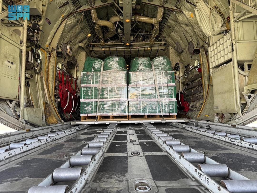وتحمل الطائرة السعودية الـ(74) على متنها سلالًا غذائية وحقائب إيوائية، تمهيدًا لنقلها إلى المتضررين من الشعب الفلسطيني الشقيق داخل قطاع غزة.