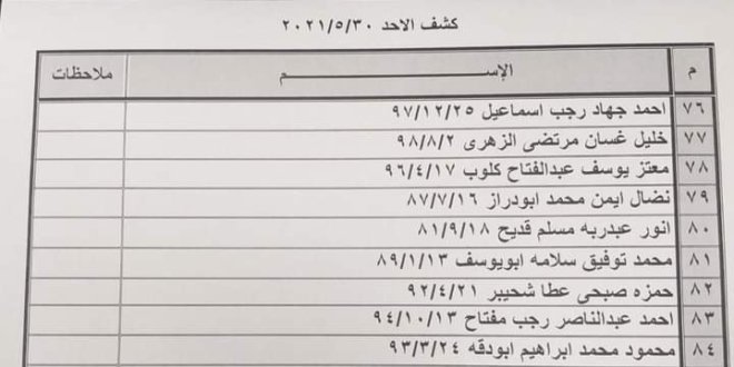 أعلنت الهيئة العامة للمعابر والحدود بوزارة الداخلية والأمن الوطني عن وصول كشف “تنسيقات مصرية” للسفر عبر معبر رفح البري يوم الأحد (30 مايو)، والذين عليهم التوجه لإجراء فحص كورونا غد السبت بدءاً من الساعة 9 صباحاً في المركزين الصحيين بمحافظتي غزة وخانيونس.