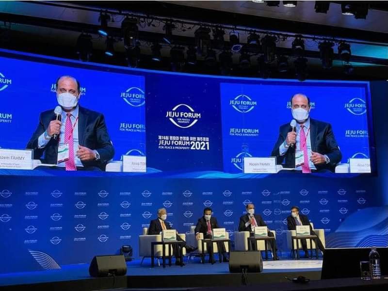 شارك الدكتور حازم فهمي سفير جمهورية مصر العربية لدى سول في “منتدى جيجو للسلام والرخاء لعام 2021” بكوريا الجنوبية، والذي يُنظمه معهد “جيجو” للتنمية سنويًا بدعم من وزارة الخارجية الكورية وبمشاركة العديد من الشخصيات الدولية المرموقة وعدد من الوزراء والسفراء والأكاديميين ومُمثلي المجتمع المدني من عدة دول.