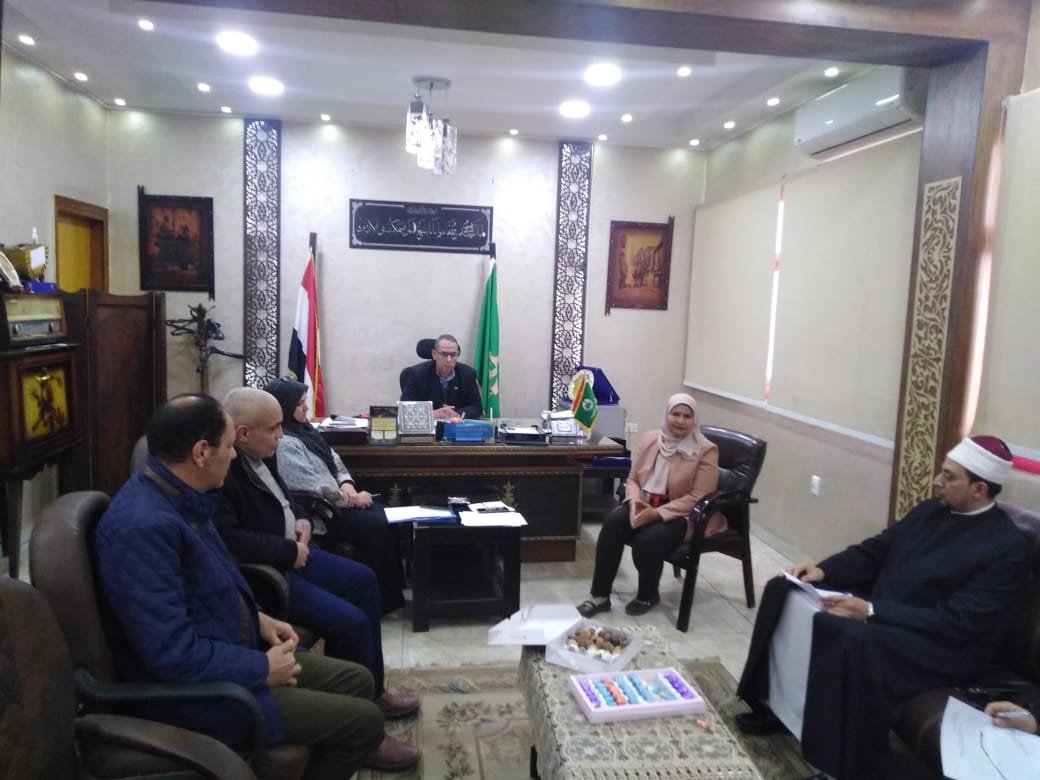 د. محمد عبدالله مدير جهاز شئون البيئة بالمحافظة، وإدارة البيئة والسكان بالمديرية برئاسة أستاذة. هالة عاشور؛ لمناقشة تنفيذ اليوم البيئي بعنوان(وطني حياتي) للتوعية بمشكلات تغير المناخ، والعمل على بناء السلوكيات والمهارات البيئية الايجابية التي تعين على تحقيق السلام مع البيئة وتكوين قاعدة معلوماتية لدي الطلاب تساعدهم في التعامل مع قضايا التغيرات المناخية والبيئية والصحية واستنهاض قيم وأخلاقيات المواطنة الصالحة لديهم.