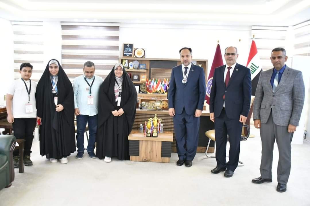 ثمن رئيس جامعة الفرات الأًوسط التقنية الأستاذ الدكتور حسن لطيف الزبيدي جهود الفائزين بالمرتبة الأولى من الكلية التقنية الهندسية النجف (مدربة الفريق ومسؤولة نادي البرمجة في الكلية الأستاذ المساعد الدكتورة علياء عبد الحسين لفتة ) في البطولة العربية الخامسة عشر للروبوت والذكاء الاصطناعي في عمان_الأردن.