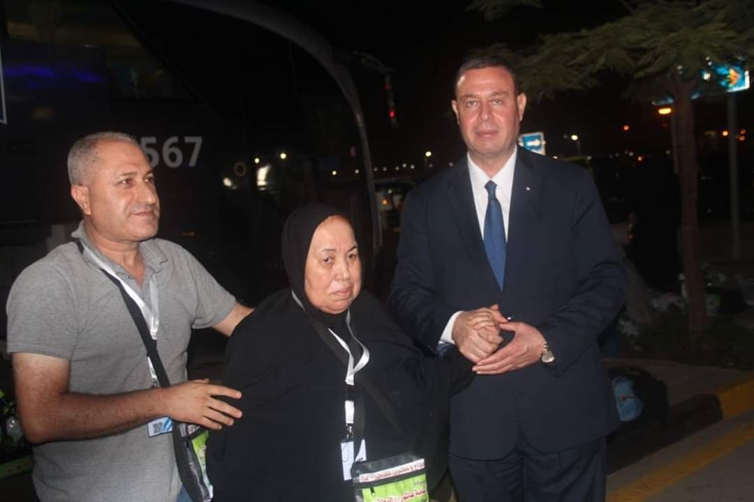وكان في استقبالهم وفد يترأسه السفير دياب اللوح، والمستشار أول نداء البرغوثي, والمستشار الاعلامي ناجي الناجي، ووفد من وزارة الأوقاف وكيل الوزارة محمود النيرب ومسؤول الحج والعمرة محمد سلامة .