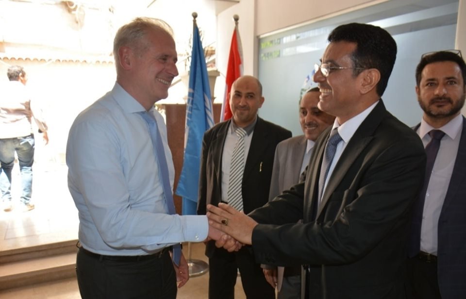 التقى سفير اليمن لدى جمهورية مصر العربية صباح امس الخميس في مقر المنظمة الدولية للهجرة التابعة لوكالة الامم المتحدة برئيس البعثة في جمهورية مصرالعربية “السيد لوران دي بوك ”