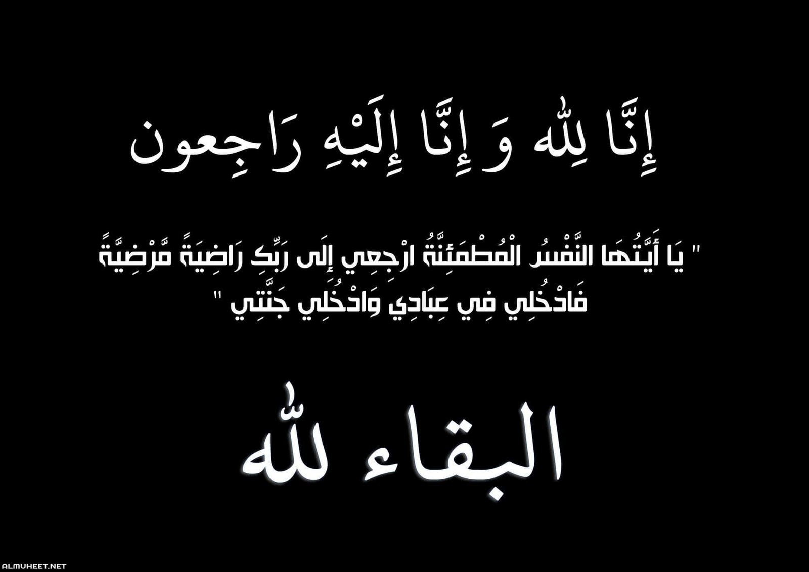 “يا أيتها النفس المطمئنة إرجعي إلى ربك راضية مرضية فادخلي في عبادي وأدخلي جنتي”.