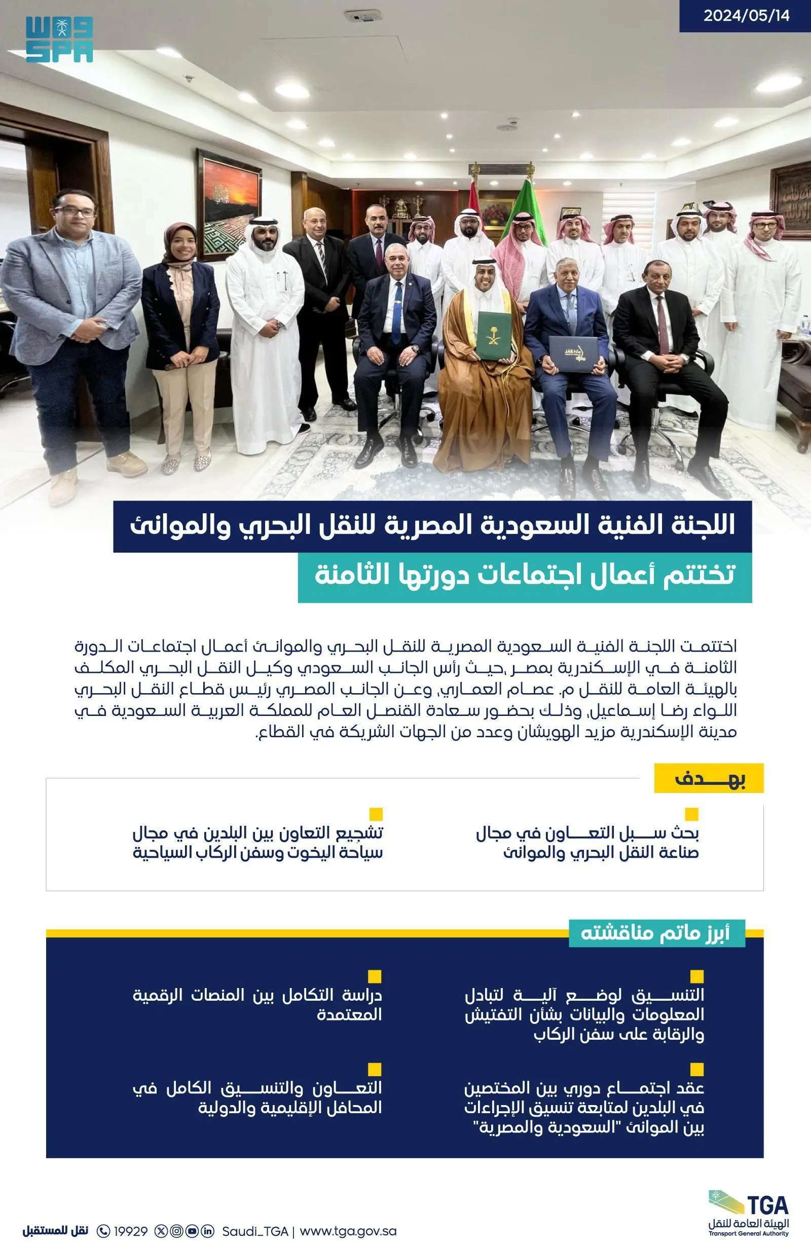 اللجنة الفنية السعودية – المصرية للنقل البحري والموانئ تختتم أعمال اجتماعات الدورة الثامنة بالإسكندرية