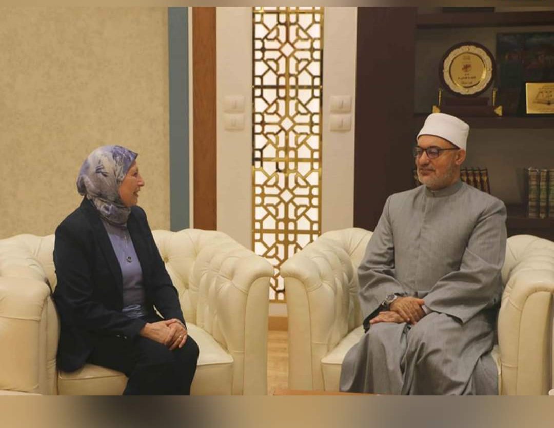جاء ذلك خلال استقبال الدكتور نظير عياد -مفتي الجمهورية، رئيس الأمانة العامة لدُور وهيئات الإفتاء في العالم- هالة رمضان، رئيس المركز القومي للبحوث الجنائية والاجتماعية؛ وذلك لتهنئة فضيلته على تولِّيه مهام منصبه الجديد، ولبحث آفاق التعاون المستقبلية بين الطرفين في المجالات ذات الاهتمام المشترك.