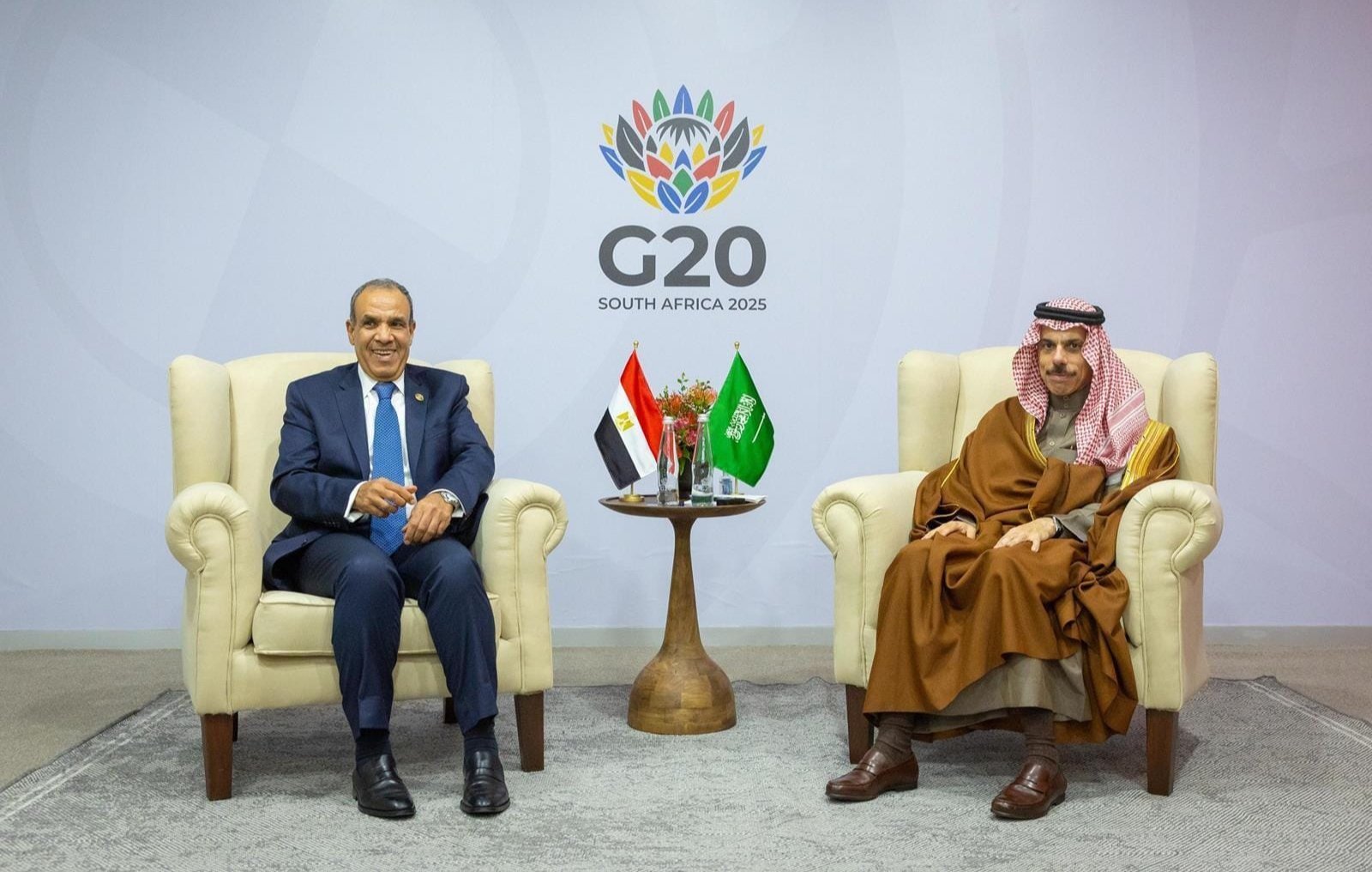 التقى صاحب السمو الأمير فيصل بن فرحان بن عبدالله وزير الخارجية، اليوم، معالي وزير الخارجية والهجرة وشؤون المصريين في الخارج بجمهورية مصر العربية الدكتور بدر عبدالعاطي، وذلك على هامش اجتماع قمة قادة دول مجموعة العشرين (G20) بمدينة جوهانسبرغ في جمهورية جنوب أفريقيا.