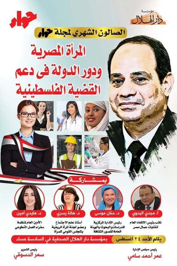 يتحدث نائب رئيس الاتحاد العام لنقابات عمال مصر مجدي البدوي مساء يوم /الأحد/ المقبل في الصالون الثقافي الشهري لمجلة “حواء” بمؤسسة دار الهلال حول المرأة المصرية ودور الدولة في دعم القضية الفلسطينية.