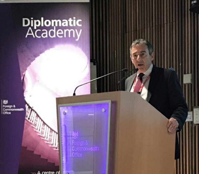 سفير مصر في لندن يلقي محاضرة بالأكاديمية الدبلوماسية التابعة للخارجية البريطانية
