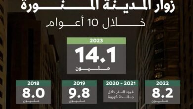 أكثر من 14 مليون زائر للمدينة المنورة بمعدلات إنفاق بلغت أكثر من 49 مليار ريال خلال العام 2023 م