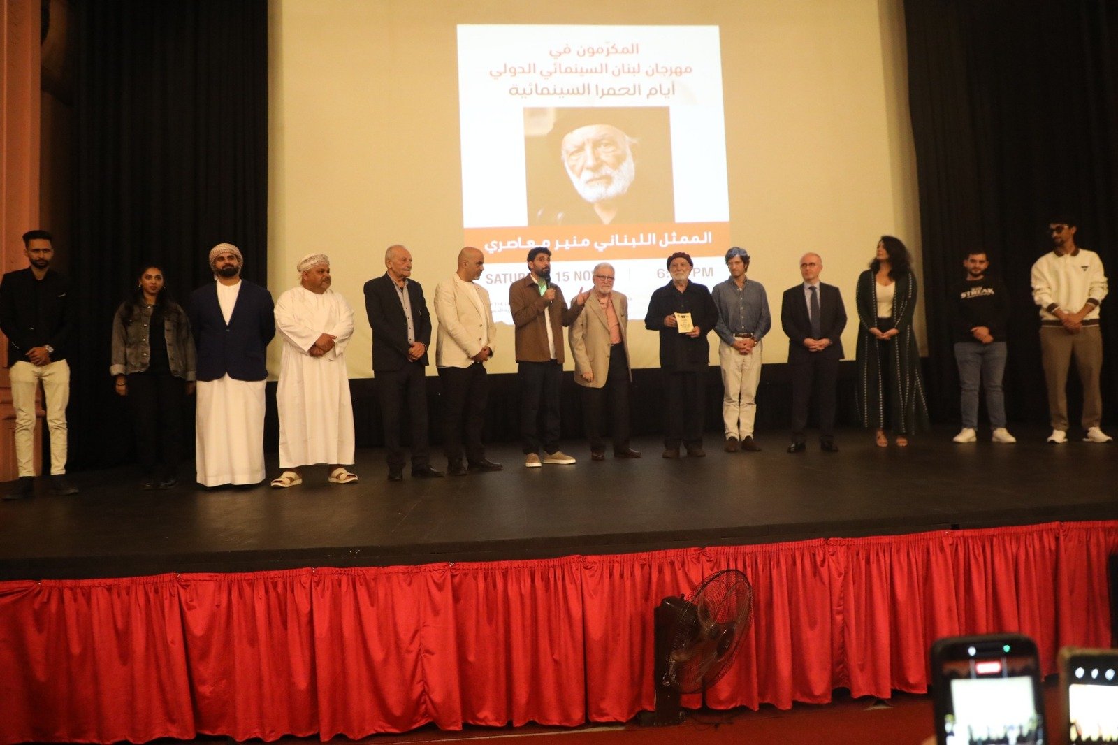 وقال الفنان منير معاصري ” بعد 60 عاماً أعود الى سينما الكوليزيه التاريخية مكرماً في هذه المكان المهم ثقافياً في لبنان ويعيد الحياة الى شارع الحمرا واستعيد بهذا التواجد حلم كبير تحقق لجميع الممثلين في لبنان بتأسيس المسرح الوطني اللبناني بيروت بعد صور وطرابلس ” .