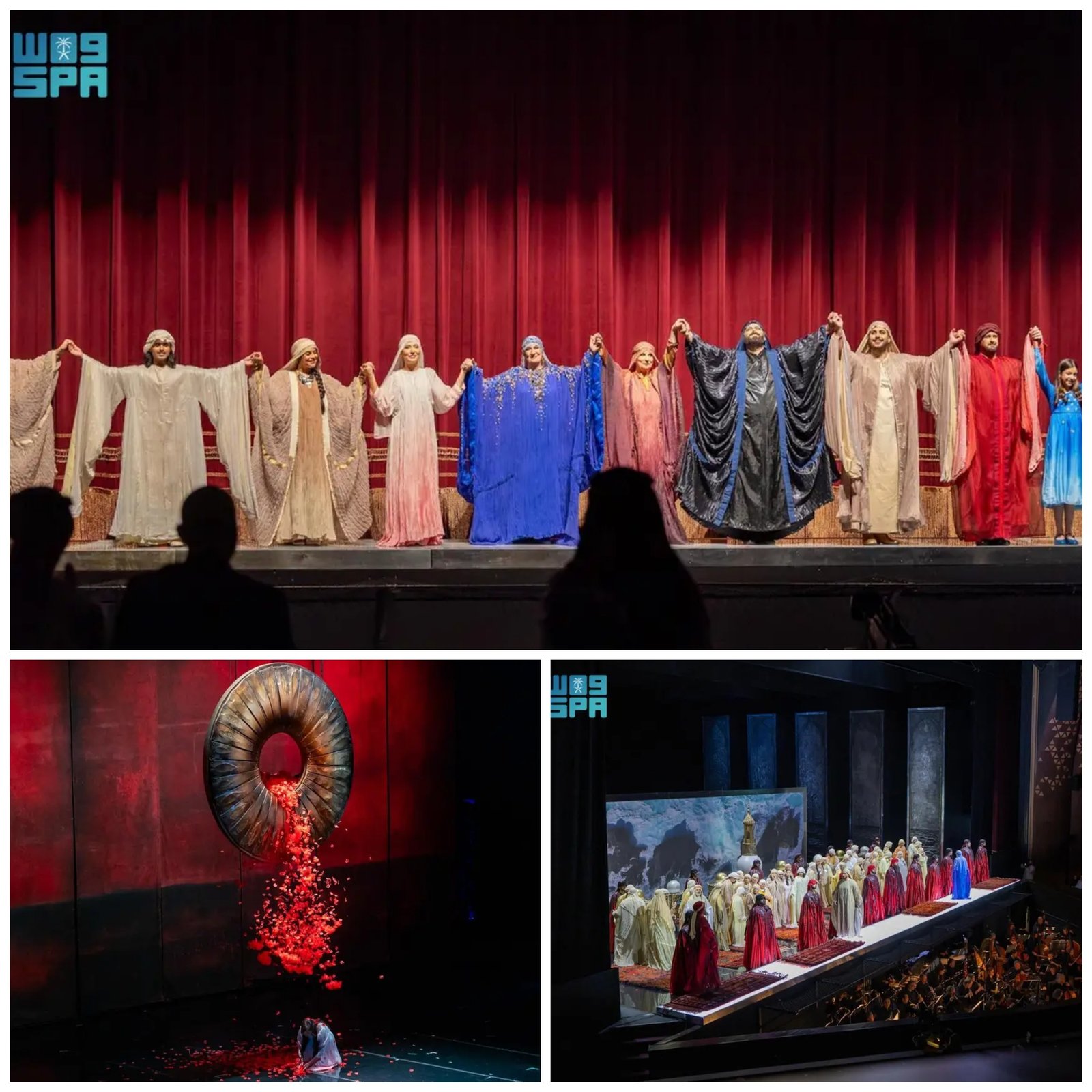 وكذلك فنانون تشاركوا المسرح مع عدد من المواهب السعودية الواعدة، حيث بلغ عدد الممثلين الإضافيين في العمل نحو 100 ممثل، و12 طفلاً، فيما بلغ عدد عازفي الأوركسترا 62 عازفاً.