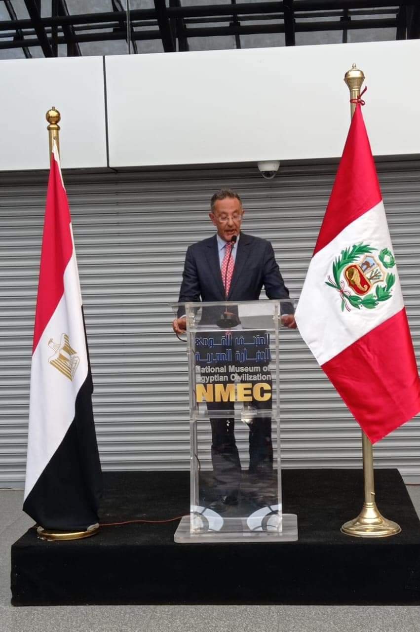 وأعرب عن سعادته بوجوده في المتحف القومي للحضارة المصرية الذي هو صرح ثقافي كبير، أتاح له التعرف علي عظمة وحضارة مصر التي اجتمعت في مكان واحد بكل تنوعها وعناصرها المميزة، مؤكدا على أهمية هذا التعاون المثمر بين كل من سفارة جمهورية بيرو والمتحف القومى للحضارة المصرية .
