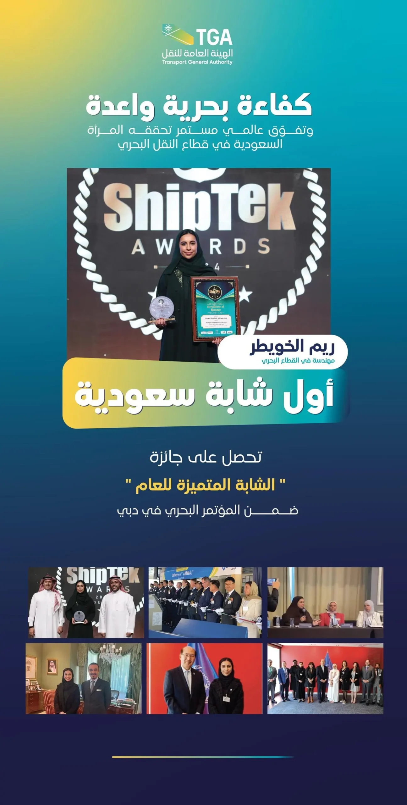 ” الخويطر ” تحصد جائزة “الشابة المتميزة للعام” على هامش المؤتمر البحري shiptek international awards 2024