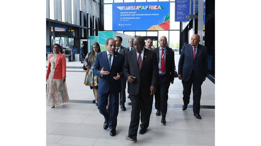 التقى السيد الرئيس عبد الفتاح السيسي اليوم مع الرئيس “سيريل رامافوزا”، رئيس جمهورية جنوب أفريقيا، على هامش انعقاد القمة الأفريقية الروسية الثانية بمدينة سان بطرسبرج.