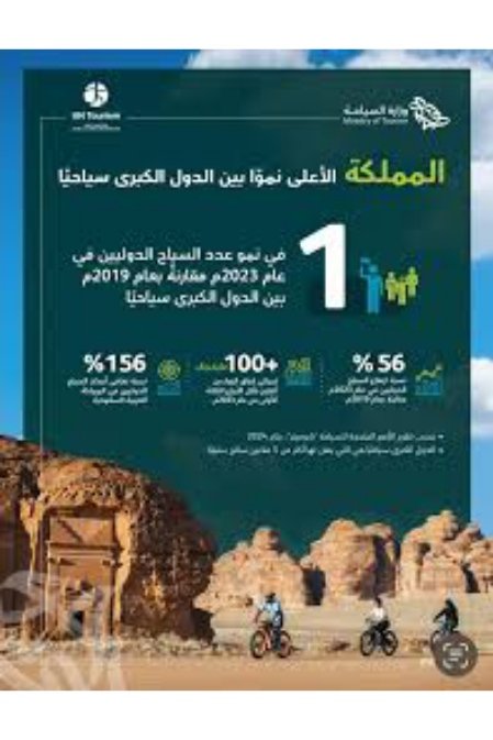 المملكة تتصدر قائمة الأمم المتحدة للسياحة في نمو عدد السياح الدوليين للعام 2023م