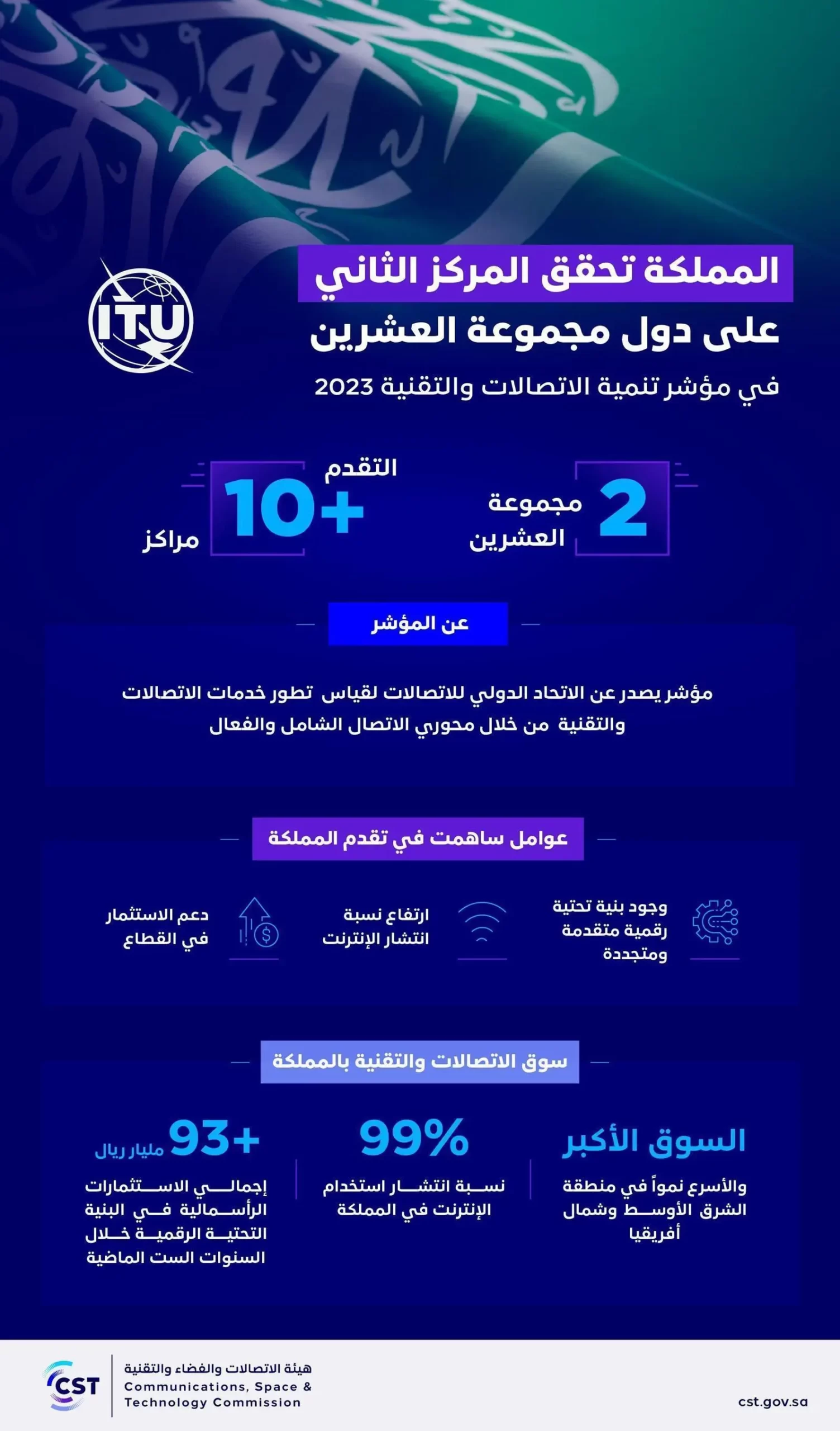 المملكة تحقق المركز الثاني بين دول مجموعة العشرين في مؤشر تنمية الاتصالات والتقنية 2023