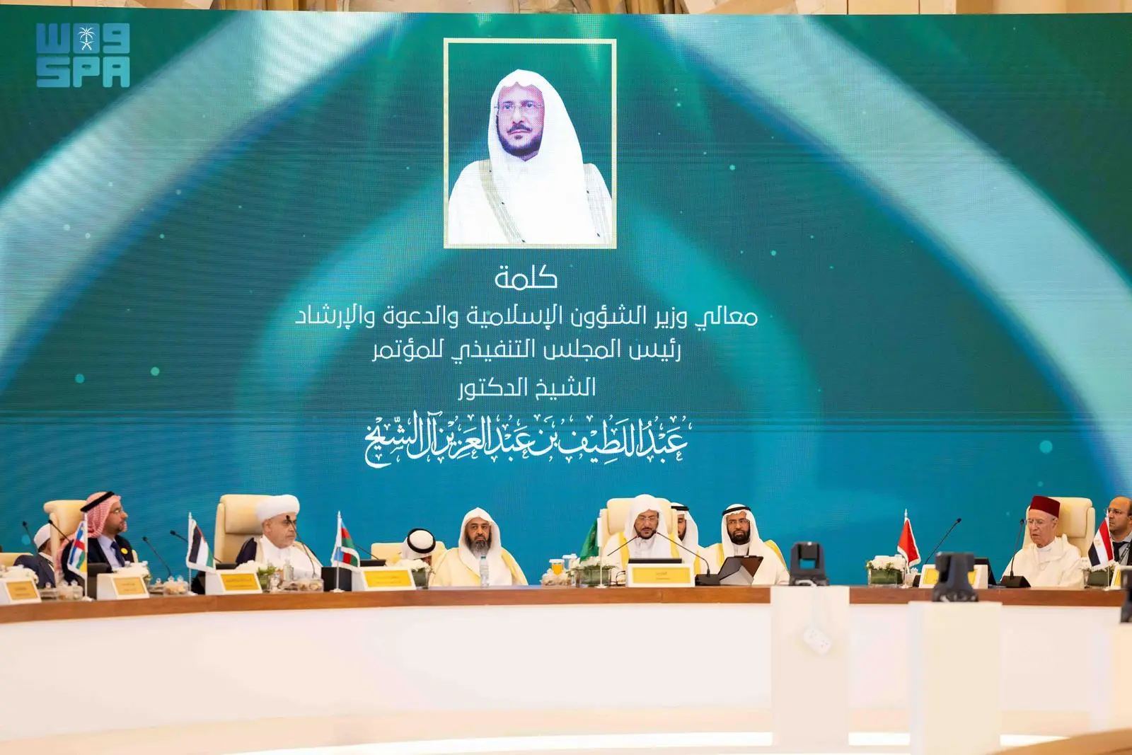 ونوه معالي وزير الشؤون الإسلامية والدعوة والإرشاد الرئيس التنفيذي للمؤتمر الشيخ الدكتور عبداللطيف بن عبدالعزيز آل الشيخ في كلمته خلال المؤتمر بالرعاية الكريمة من خادم الحرمين الشريفين الملك سلمان بن عبدالعزيز آل سعود -حفظه الله- لأعمال المؤتمر، مبيناً النهج الراسخ للمملكة في جمع الكلمة، ووحدة الصف وتفعيل مبدأ التشاور والتعاون على البر والتقوى.