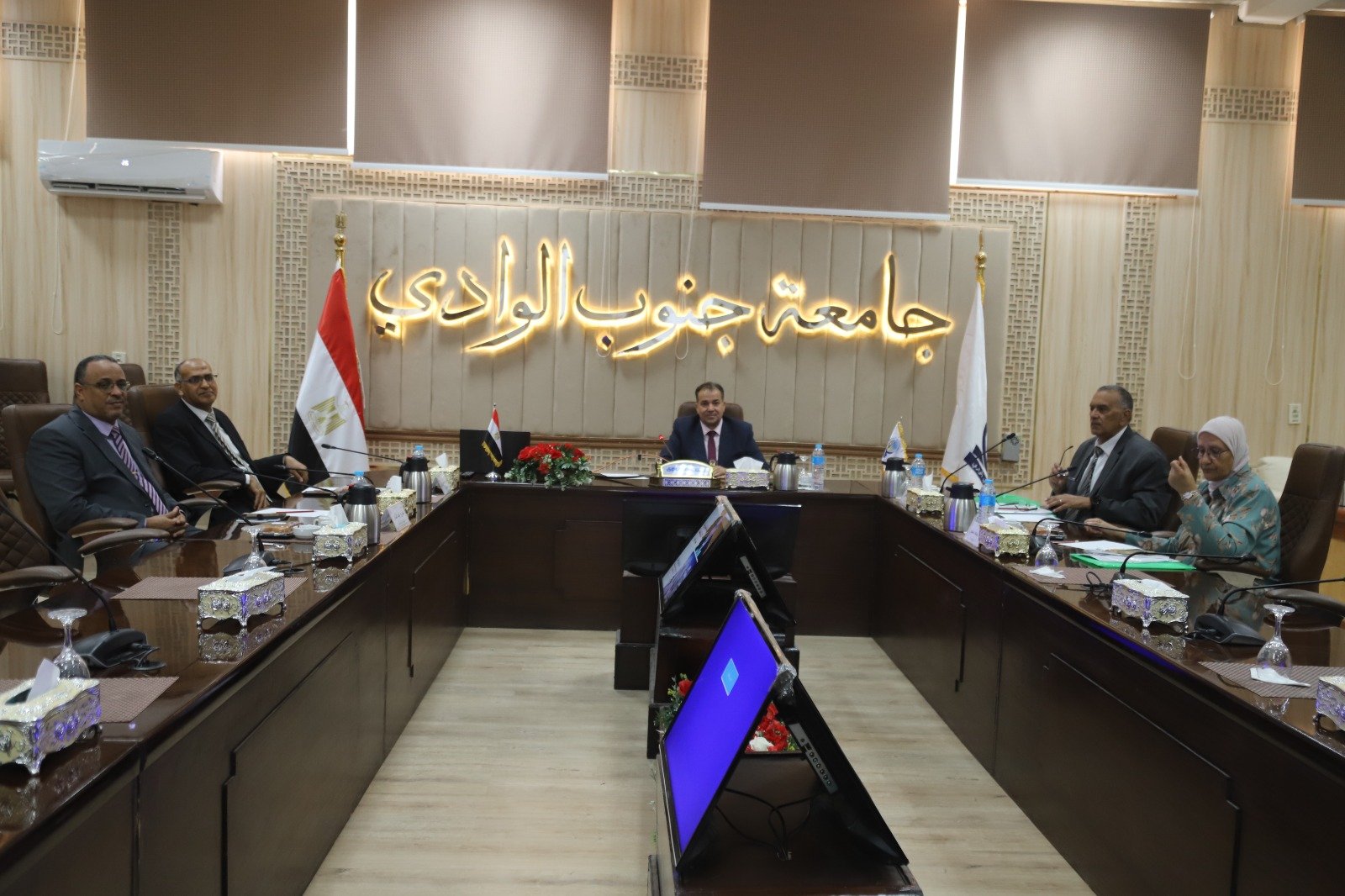 عقدت جامعة جنوب الوادى برئاسة الدكتور احمد عكاوي رئيس الجامعة وعضوية كل من الدكتور علي عبد الرحمن غويل عميد كلية الطب ، الدكتور عمرو عبد القادر عميد كلية التربية النوعية ، الدكتور علاء عبد المحسن شاهين الاستاذ بجامعة القاهرة ، الدكتورة ثناء جمعة الاستاذ بكلية الاثار بجامعة جنوب الوادي وذلك لاختيار عميد كلية الاثار