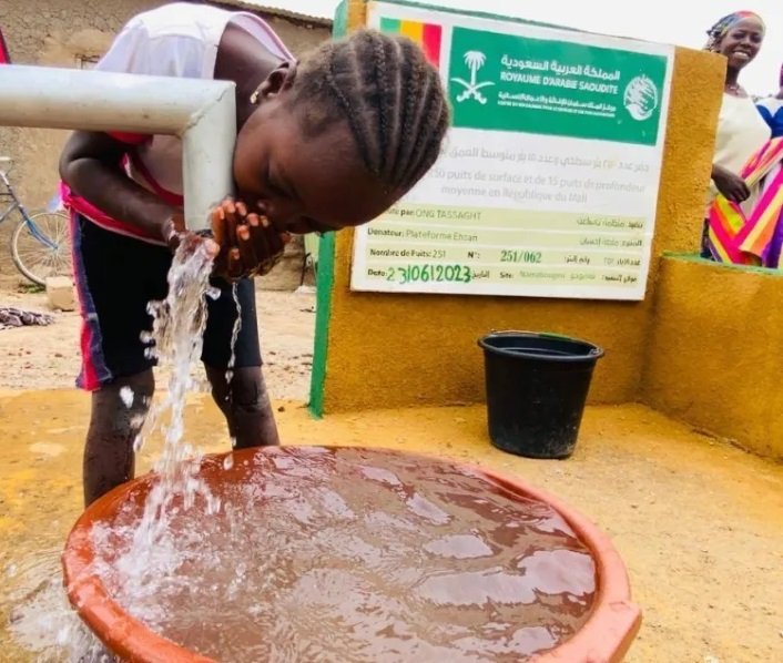 قام مركز الملك سلمان للإغاثة والأعمال الإنسانية بتنفيذ مشروع لحفر 265 بئر مياه صالحة للشرب في عدة مناطق بجمهورية مالي، وذلك بالتعاون مع إحدى مؤسسات المجتمع المدني.