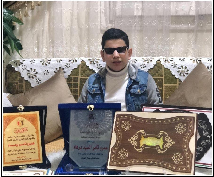 بعد أن تحدى إعاقته البصرية وختم حفظ القرآن الكريم فى العاشرة من عمره، وأجاد الإنشاد الدينى وفن الخطابة، حاصدا المراكز الأولى كأفضل صوت وأداء فى قراءة القرآن الكريم على مستوى الدول العربية.