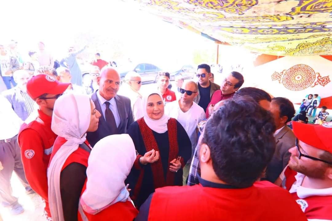 وحرصت الوزيرة على لقاء متطوعي الهلال الأحمر المصري في المحافظة، مشيدة بما يقدموه في جميع المواقع.