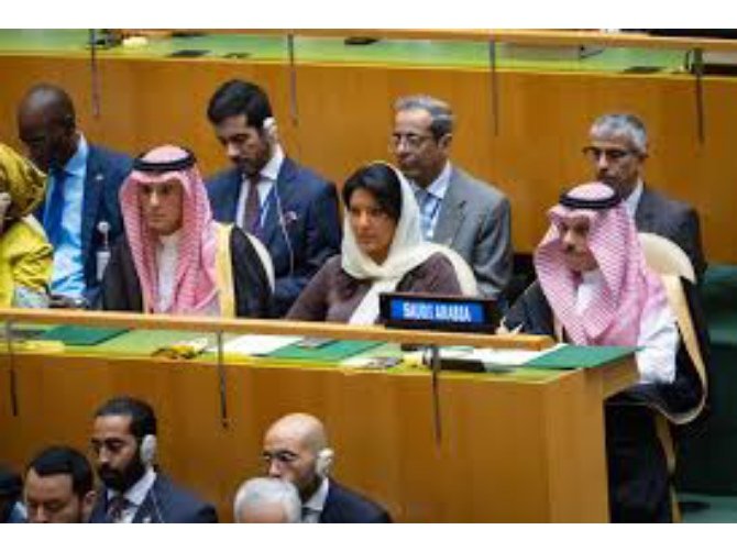 وضم وفد المملكة في افتتاح أعمال الجمعية، صاحبة السمو الملكي الأميرة ريما بنت بندر بن سلطان بن عبدالعزيز سفيرة خادم الحرمين الشريفين لدى الولايات المتحدة الأمريكية، ومعالي وزير الدولة للشؤون الخارجية عضو مجلس الوزراء ومبعوث شؤون المناخ الأستاذ عادل بن أحمد الجبير، ووكيل وزارة الخارجية للشؤون الدولية المتعددة والمشرف العام على وكالة الوزارة لشؤون الدبلوماسية العامة الدكتور عبدالرحمن الرسي، ومندوب المملكة الدائم لدى الأمم المتحدة في نيويورك السفير الدكتور عبدالعزيز الواصل، ومدير عام مكتب سمو وزير الخارجية عبد الرحمن الداود.