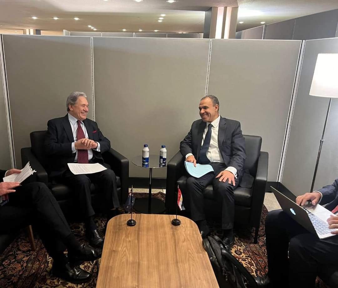 التقي الدكتور بدر عبد العاطي وزير الخارجية والهجرة وشئون المصريين بالخارج بالسيد “ونستون بيتيرز” وزير خارجية نيوزيلندا، على هامش الشق رفيع المستوي للجمعية العامة للأمم المتحدة المُنعقدة بنيويورك.