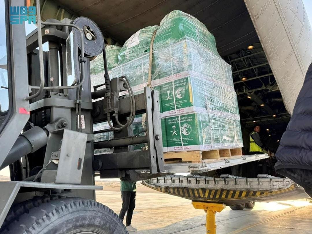 وصول الطائرة الإغاثية السعودية الـ73 لإغاثة الشعب الفلسطيني في قطاع غزة الى مطار العريش الدولي