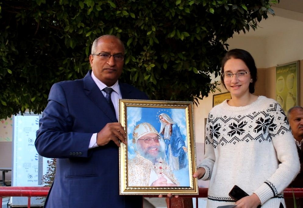 وكيل تعليم بني سويف يهدي صورة السيدة مريم العذراء للطالبة يوستينا سعد