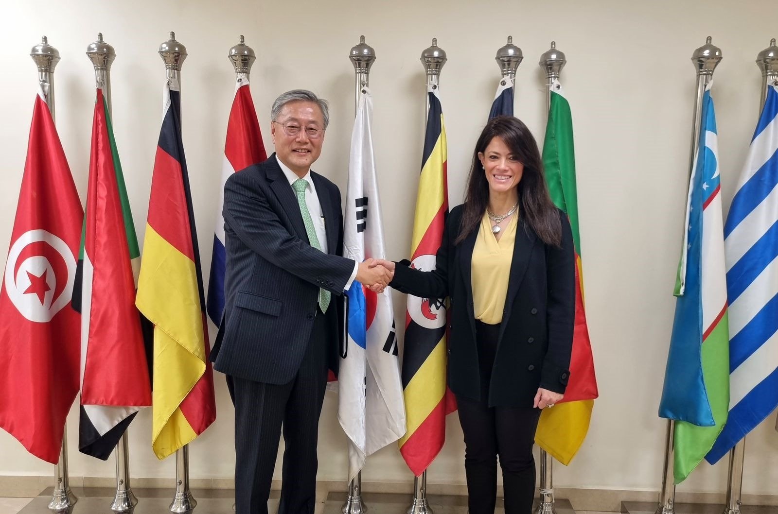 التقى اليو سفير جمهورية كوريا لدى مصر كيم يونجهيون بوزيرة التعاون الدولي الدكتورة رانيا المشاط لبحث سبل تعزيز التعاون المشترك بين كوريا ومصر. وأشار السفير كيم إلى أن الشركات الكورية العاملة في مصر تستفيد من التطور الإيجابي الأخير في وضع الاقتصاد الكلي في مصر، وأعرب عن تقديره للوزيرة المشاط لقيادتها ودورها في إبرام سلسلة من الاتفاقيات مع الشركاء الدوليين بما في ذلك صندوق النقد الدولي والاتحاد الأوروبي والبنك الدولى. وأضاف أن تحسن استقرار الاقتصاد المصري سيمهد الطريق أمام المزيد من الشركات الكورية للاستثمار في مصر في المستقبل القريب.