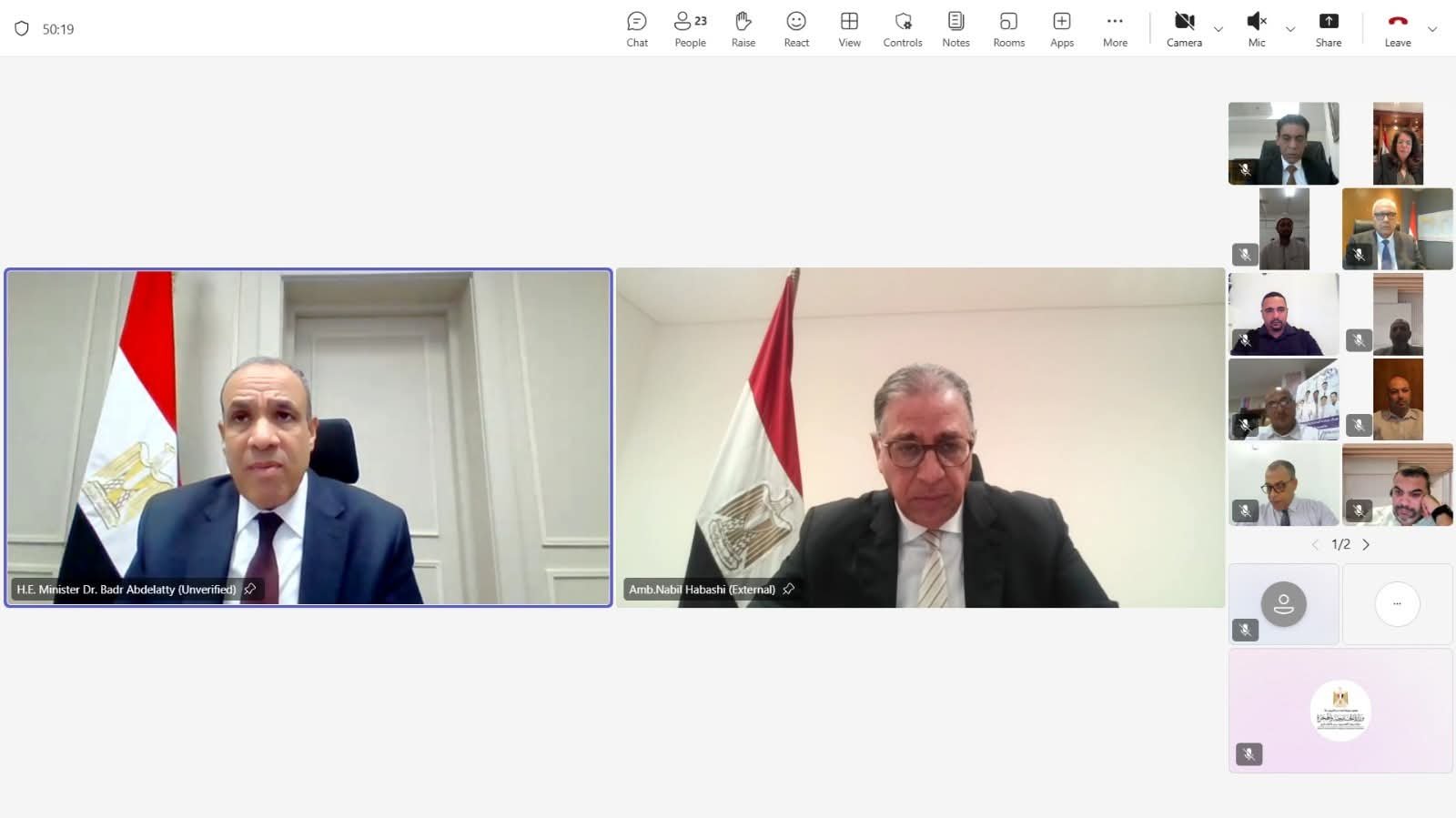 شارك في اللقاء السفير نبيل حبشي نائب وزير الخارجية والهجرة وشئون المصريين بالخارج، والسفير حداد الجوهري مساعد وزير الخارجية للشئون القنصلية والمصريين بالخارج، والسفير أحمد مصطفى سفير جمهورية مصر العربية في سنغافورة، والسفيرة هالة يوسف سفيرة جمهورية مصر العربية في تايلاند و غير المقيم في كمبوديا.