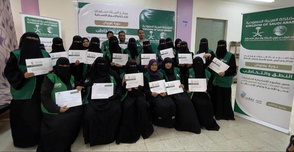 مركز الملك سلمان للإغاثة يختتم بعدن تدريب معلمات المجمع المهني لتأهيل ذوي الاحتياجات الخاصة حول النطق والتخاطب
