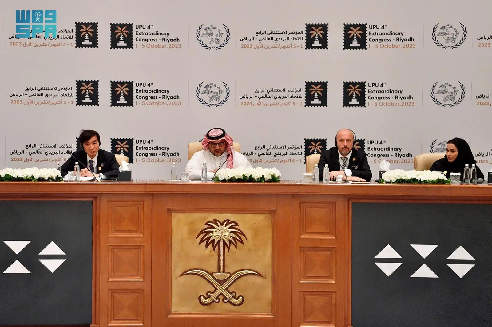 عقد الاتحاد البريدي العالمي أمس المؤتمر الصحفي الختامي لاستعراض القرارات التي ناقشتها الدول الأعضاء وصناع القرار بعد اختتام فعاليات مؤتمر الرياض الاستثنائي للاتحاد البريدي العالمي، خلال خمسة أيام من الحوارات التي عُنيت بتعزيز قطاع البريد والخدمات اللوجستية والتوسع في إمكانيات خدمات المنظومة البريدية عالميًا، حيث رأس المؤتمر الصحفي معالي رئيس مؤسسة البريد السعودي (سبل) المهندس آنف أبانمي، ونائب المدير العام للاتحاد البريدي العالمي السيّد مارجان أوسفيلد.